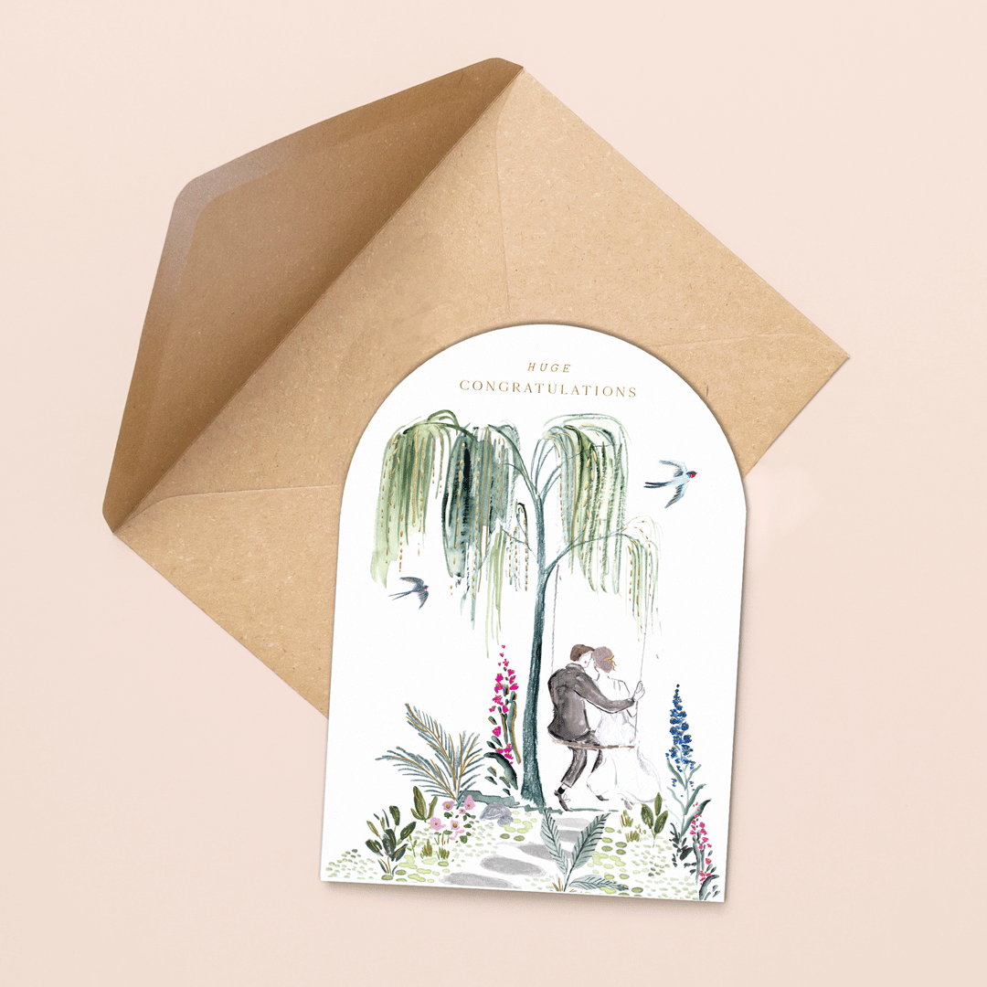 The perfect card for a very special couple. Arch die cut and gold foil finish.